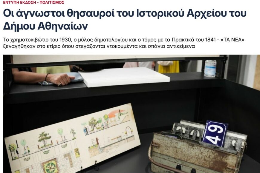 Read the article titled “The Unknown Treasures of the Historical Archive of the Municipality of Athens”, published in Tuesday’s edition,
